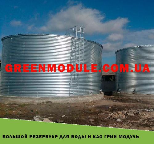 Полімерні ємності «Грін Модуль» у металевому оцинкованому каркасі це довговічні, зручні, надійні та економічні резервуари для води та добрив КАС та інших рідин. Ми гарантуємо наш виріб на 5 років, розрахунковий термін експлуатації до 30 років. - оцинкований металевий каркас забезпечує довговічність та міцність резервуара; - пластиковий вкладиш із поліпропілену (або ПВХ), яким ізолюється металева частина ємності, забезпечує водонепроникність та тривалий термін експлуатації ємності. Металевий каркас складається з оцинкованих листів товщиною 0,8-2 мм., Виробництво - Україна. Сфера застосування ємностей Грін Модуль: зберігання питної та технічної води промислових підприємств, офісних будівель, готелів, пансіонатів, малих населених пунктів тощо; використовуються як пожежні резервуари, а також для зберігання питної води шкіл, лікарень, військових гарнізонів, готелів, пансіонатів, офісів, промислових підприємств; зберігання води та рідких мінеральних добрив у сільському господарстві; запас води для поливу великих територій (парків, футбольних полів тощо); запас води для поливу фруктових дерев, квітів при вирощуванні овочів, у тому числі в тепличних господарствах; ємності для вирощування риби; технологічні ємності у водопідготовці та очищенні стічних вод; тимчасове зберігання води для віддалених робочих селищ, виїзних робочих бригад (з подальшим демонтажем та перенесенням в інше місце); переливні ємності для басейнів – в обмежених (підвальних) приміщеннях можна збирати ємності великого обсягу.